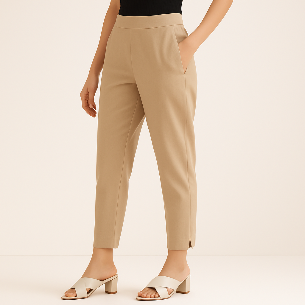 Elevate your everyday wardrobe with trousers that balance form, function, and freedom. Crafted for the woman who values effortless style, this pair is all about clean lines, a flattering tapered silhouette, and all-day comfort.